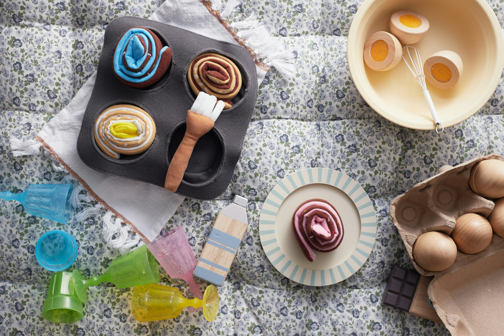 Setet är lämpligt att använda tillsammans med leksakskök eller som en fristående leksak där barn kan efterlikna matlagning och servering i trygga ramar.